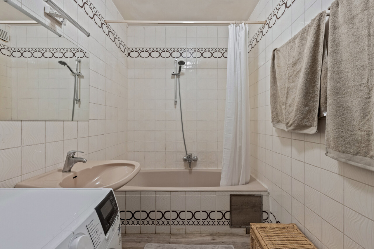 L’appartement comprend également un WC séparé, un débarras pratique et une salle de bains soignée. Les deux chambres offrent des superficies confortables de 12 m² et 15 m².