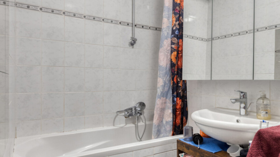 Le séjour lumineux de 24 m² communique avec la cuisine fermée entièrement équipée de 6 m². L’appartement dispose également de deux chambres de 12 m² et 8 m², ainsi que d’une salle de bains moderne avec baignoire.