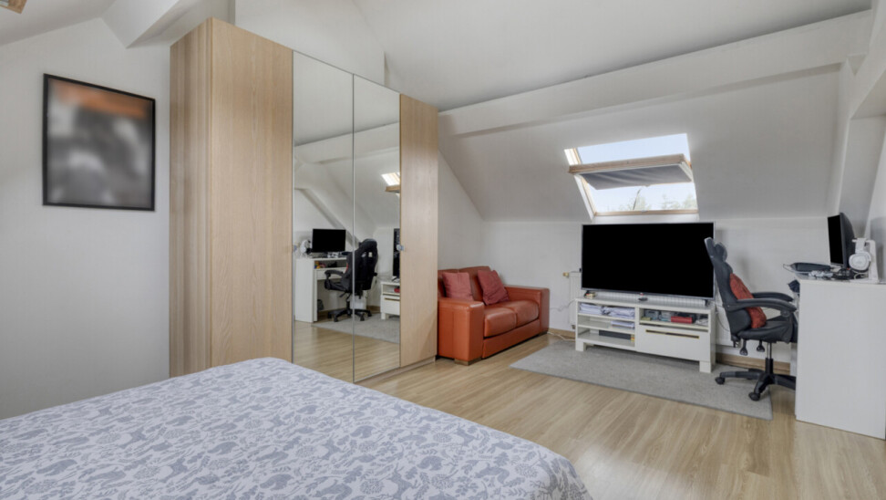 Au premier étage, trois chambres de 16 m², 12 m² et 9 m², un WC séparé et une salle de douche moderne de 4 m² avec douche à l’italienne. Le deuxième étage offre un vaste grenier de 55 m² avec un espace de vie séparé et une salle de bains de 6 m² avec baignoire et WC, idéal pour une chambre principale ou un espace de détente.