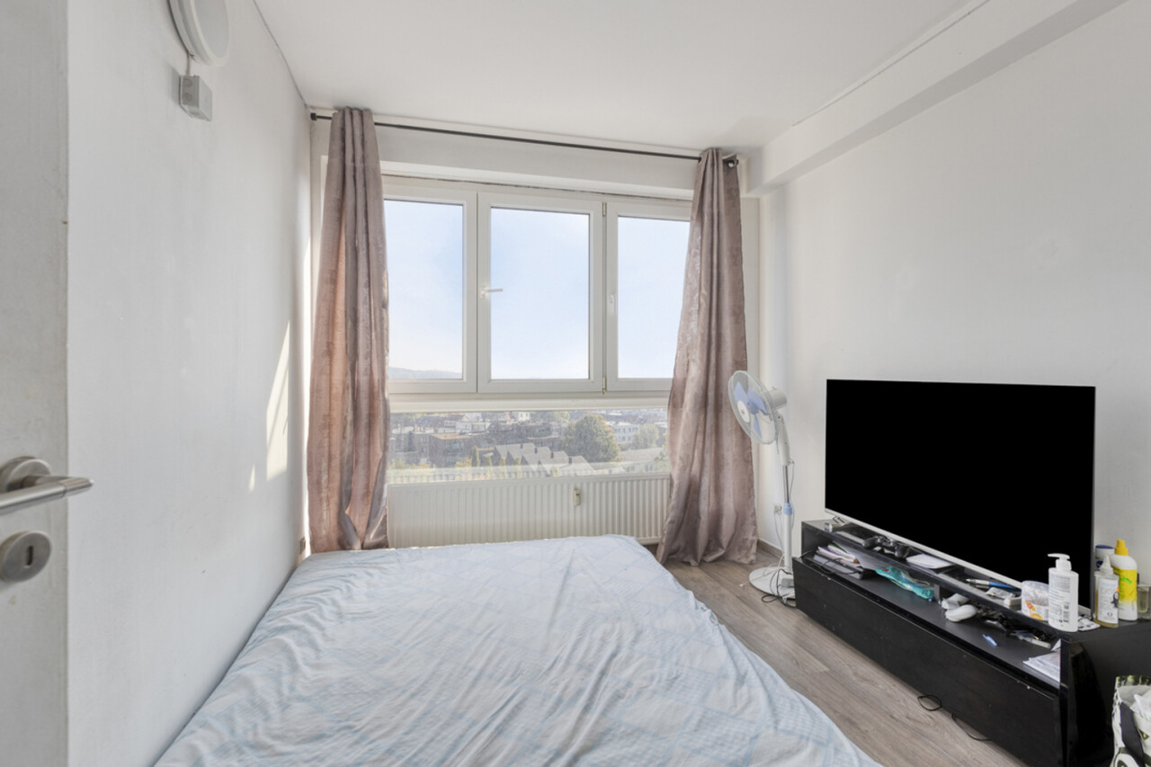 Immo DAVID stelt voor: dit instapklare appartement van 72 m² op de 8ste verdieping, waar licht, comfort en uitzicht centraal staan. Vanuit de ruime leefruimte (24 m²) met open keuken geniet je van een uniek, onbelemmerd uitzicht over de skyline van Brussel – een gevoel van ruimte en vrijheid dat zelden te vinden is!