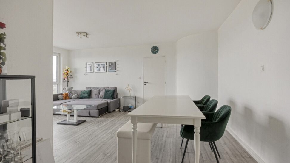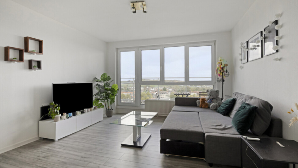 Immo DAVID presenteert dit instapklare appartement van 72 m² op de 11de verdieping, waar licht, comfort en uitzicht centraal staan. De ruime leefruimte (33 m²) met grote ramen biedt een adembenemend, onbelemmerd zicht op Brussel – een zeldzaam gevoel van ruimte en vrijheid.