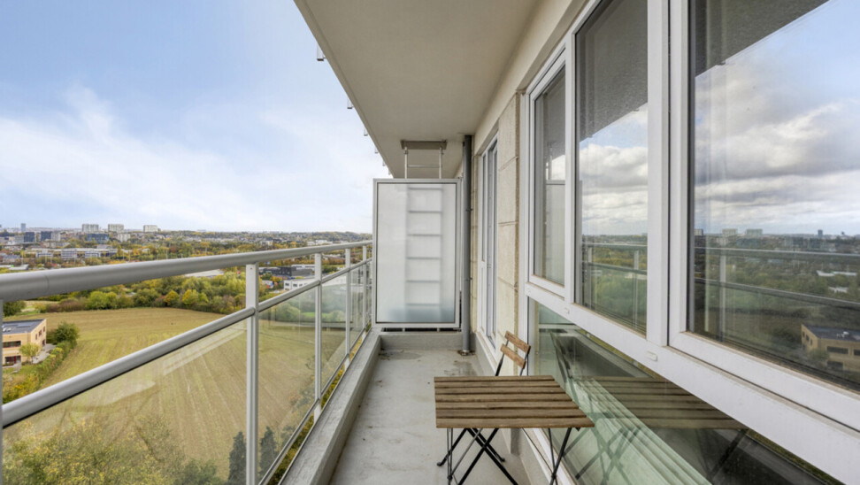 Op het oostgerichte terras van 7 m², recent vernieuwd, geniet je van de ochtendzon en het schitterende uitzicht over de stad.
