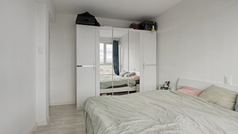 Het appartement beschikt over twee slaapkamers (13 m² en 8 m²) met dubbele beglazing, ideaal voor een koppel, klein gezin of als bureau/logeerkamer. Daarnaast zijn er een praktische ingebouwde kast, een verzorgde badkamer met ligbad en een afzonderlijk toilet.
