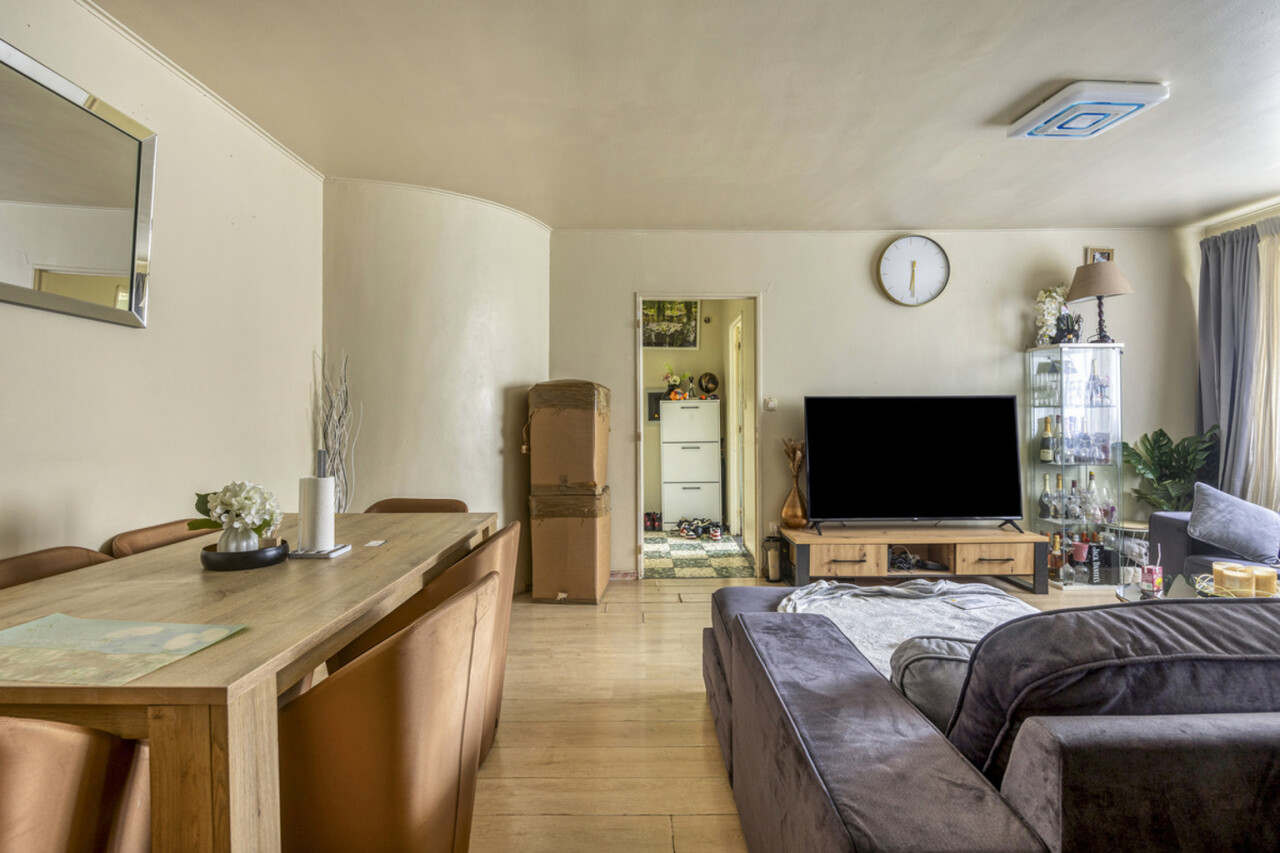Het appartement geniet van veel natuurlijke lichtinval en ademt een warme, huiselijke sfeer.