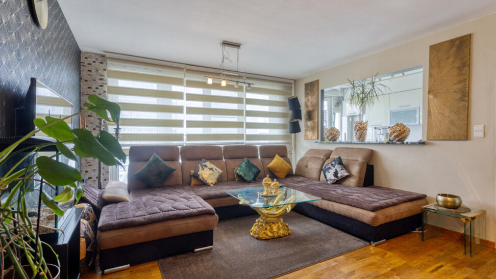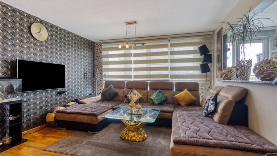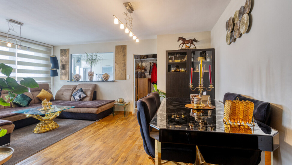 Vanuit de ruime leefruimte (24 m²) met open keuken geniet je van een uniek, onbelemmerd uitzicht over het park.