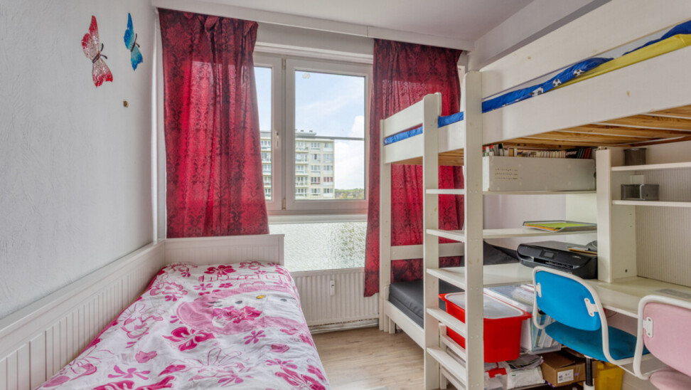 De twee slaapkamers (12 m² en 8 m²) garanderen rust en comfort. De moderne, ruime badkamer is uitgerust met een inloopdouche in eigentijdse stijl.