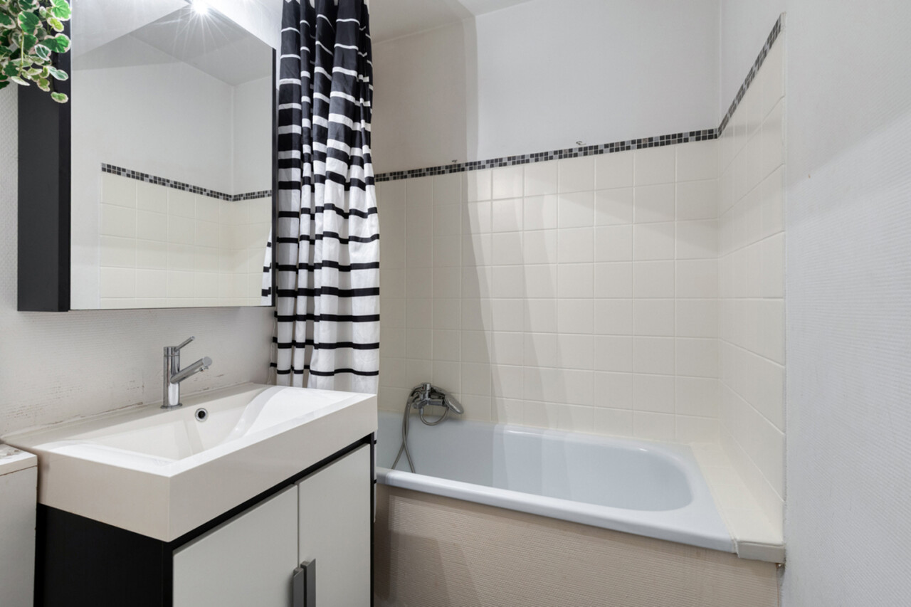 De slaapkamer van 9 m² garanderen rust en comfort. De moderne, badkamer is uitgerust met een ligbad en enkele lavabo in eigentijdse stijl.