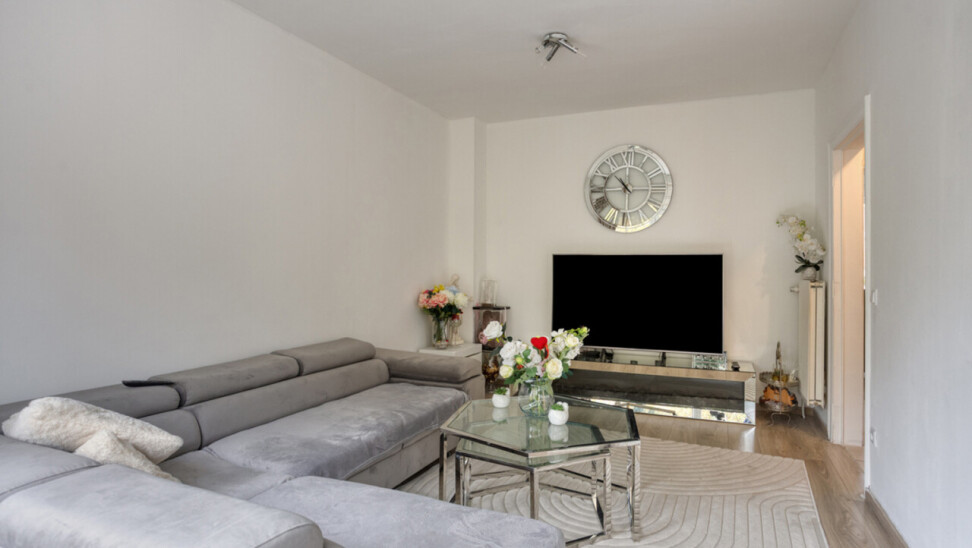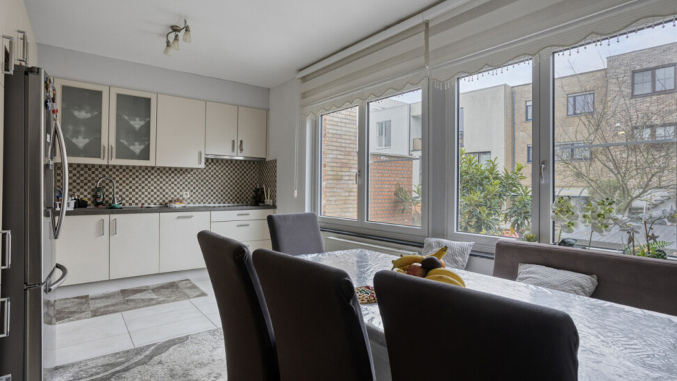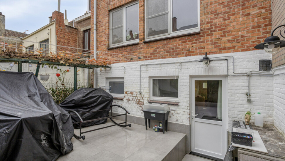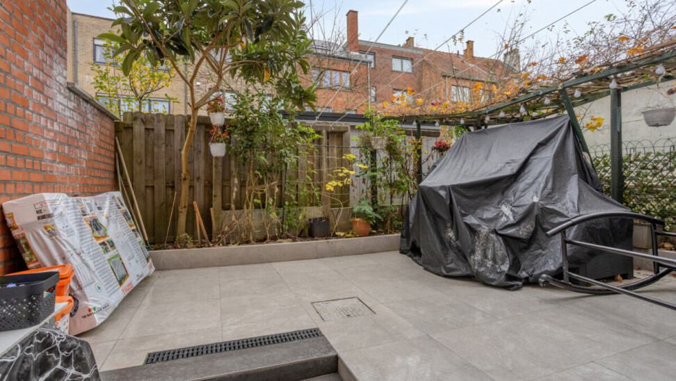 Deze instapklare bel-étagewoning in Sint-Agatha-Berchem komt men binnen in een inkomhal van 14 m². Links van de inkom bevindt zich de garage van 24 m², die momenteel is ingericht als woonkamer met keuken. Deze ruimte geeft rechtstreeks uit op een koer van 35 m², een rustige plek om buiten te genieten. Op het gelijkvloers bevindt zich bovendien een badkamer van 7 m², uitgerust met lavabo, wc en bad. Dankzij deze indeling is de woning ideaal als kangoeroewoning, of voor gezinnen waarbij de ouders op het gelijkvloers willen wonen, terwijl de rest van het gezin boven woont.
