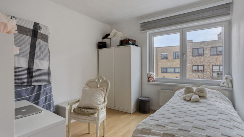 Op de eerste verdieping treft u de uitgeruste keuken met eetruimte van 18 m², samen met een ruime woonkamer van 27 m². De grote ramen zorgen hier voor een aangename lichtinval en een open gevoel. De bovenste verdieping telt twee slaapkamers van 12 m² en twee van 9 m² aangevuld met een praktische douchekamer van 2 m².