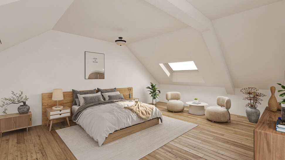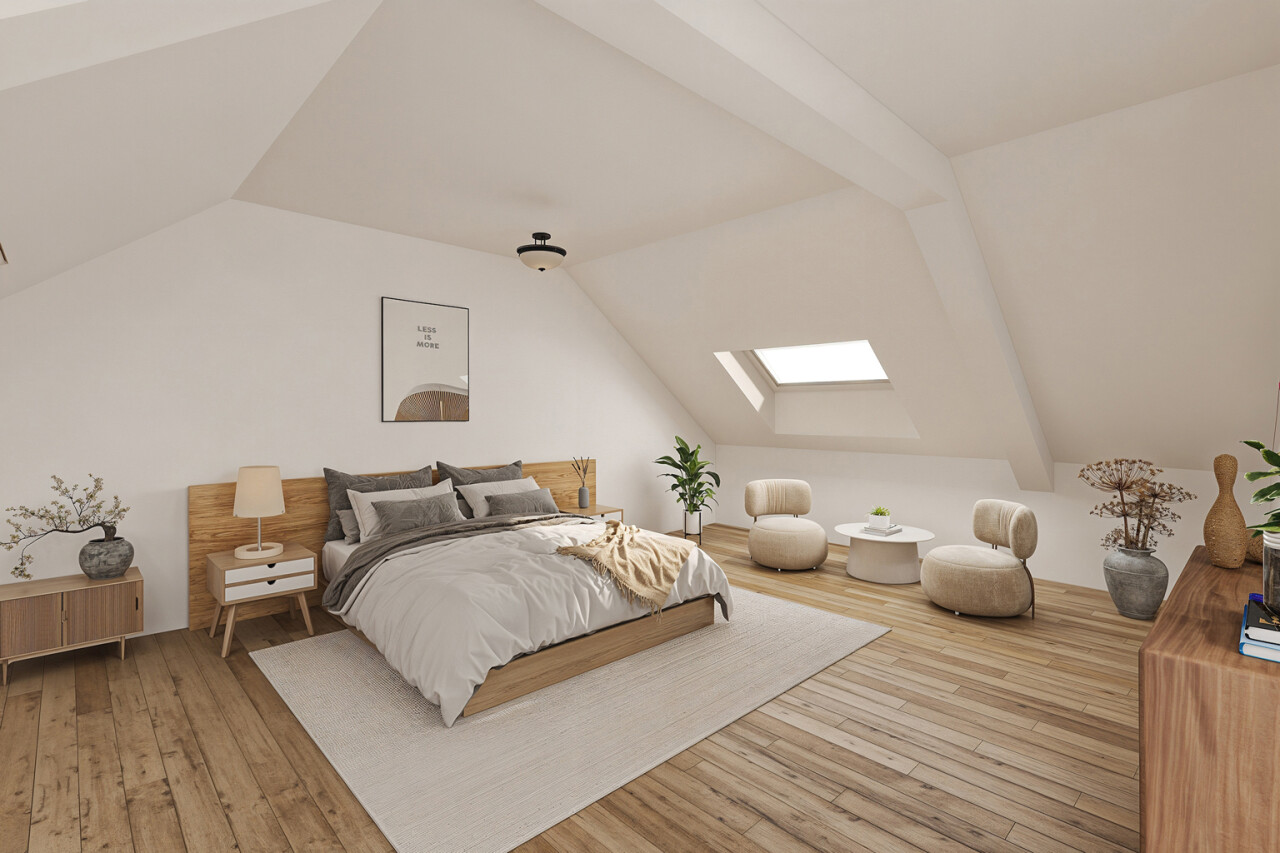 Op de eerste verdieping vindt u een comfortabele woonkamer van 27 m² en een eerste slaapkamer van 16 m². De tweede verdieping beschikt over een ruime zolderkamer van 37 m², ideaal als tweede slaapkamer, hobbyruimte of thuisstudio.