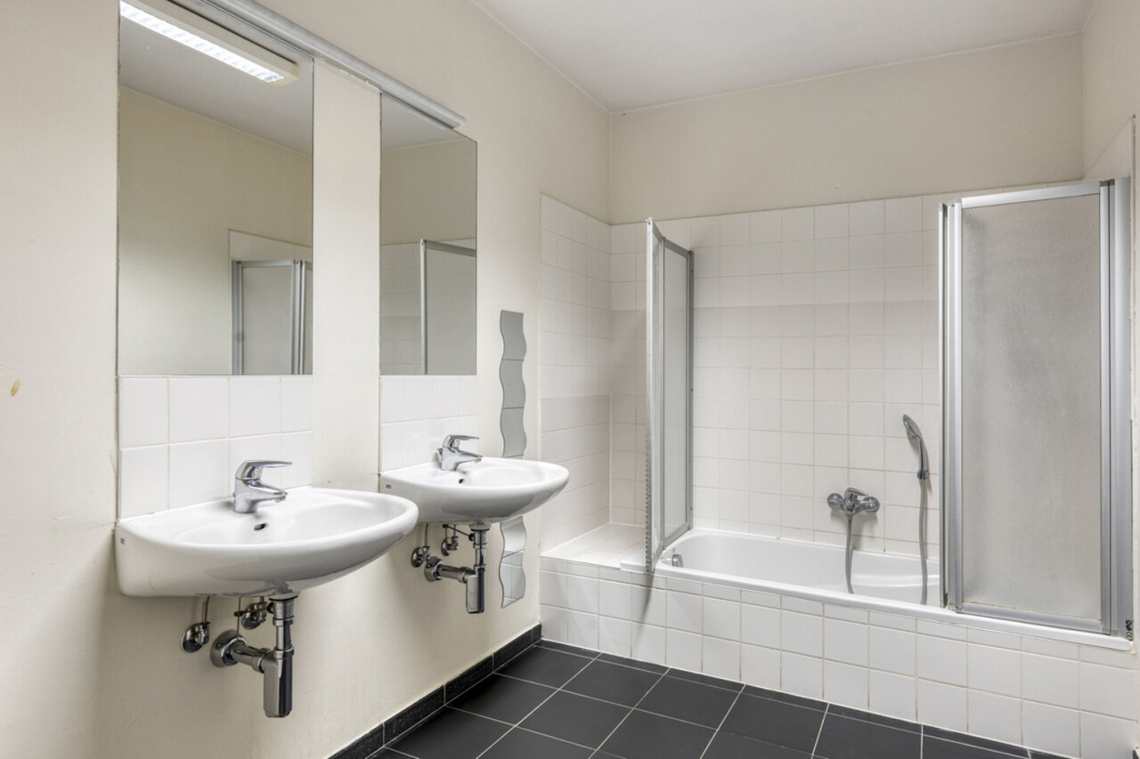 Op de tweede verdieping bevinden zich twee lichtrijke appartementen van 83 m² en 85 m². Elk appartement beschikt over een private inkom, een apart toilet, een berging met aansluiting voor wasmachine en droogkast, een comfortabele leefruimte met open keuken, een balkon aan de achterzijde en twee slaapkamers van 10 m² en 13 m². Er is een aparte toegang tot de appartementen en een lift is voorzien. Het eerste verdiep kan bovendien opnieuw worden geconverteerd naar twee appartementen, mits goedkeuring van stedebouw. Het gebouw geniet van veel natuurlijke lichtinval en heeft een gunstige EPC-score.