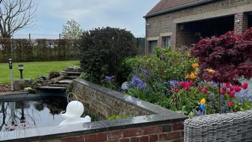 Buiten geniet u van een aangelegde tuin met siervijver en terrassen.