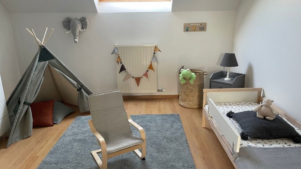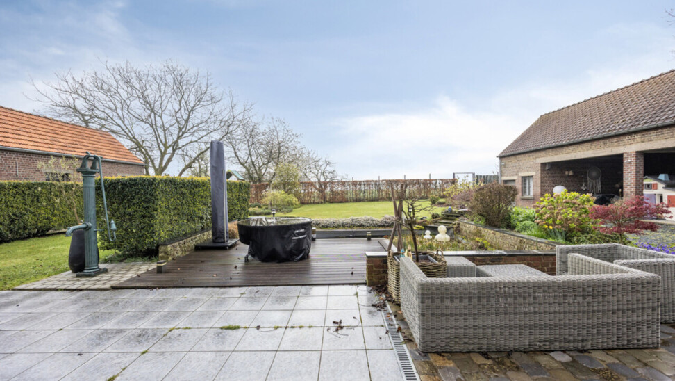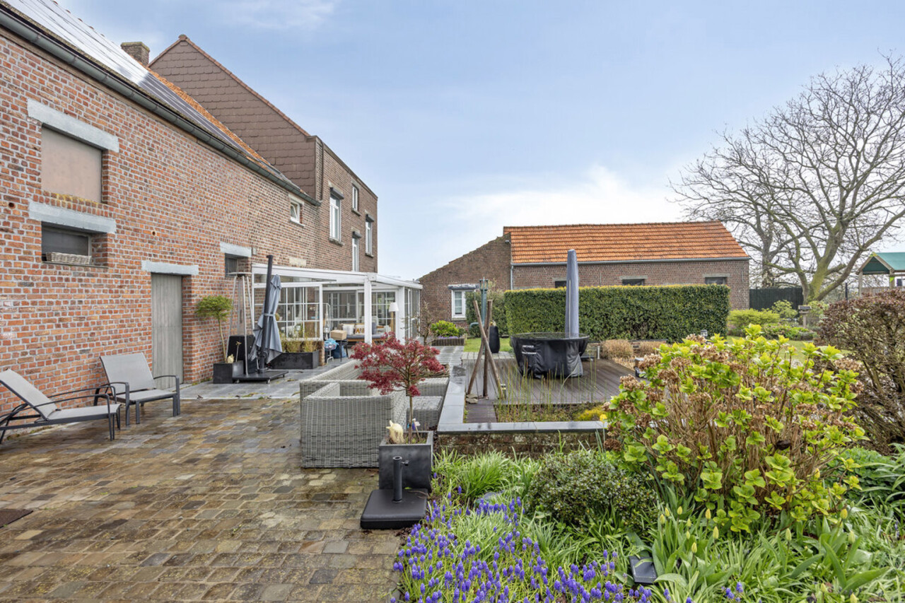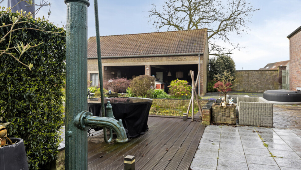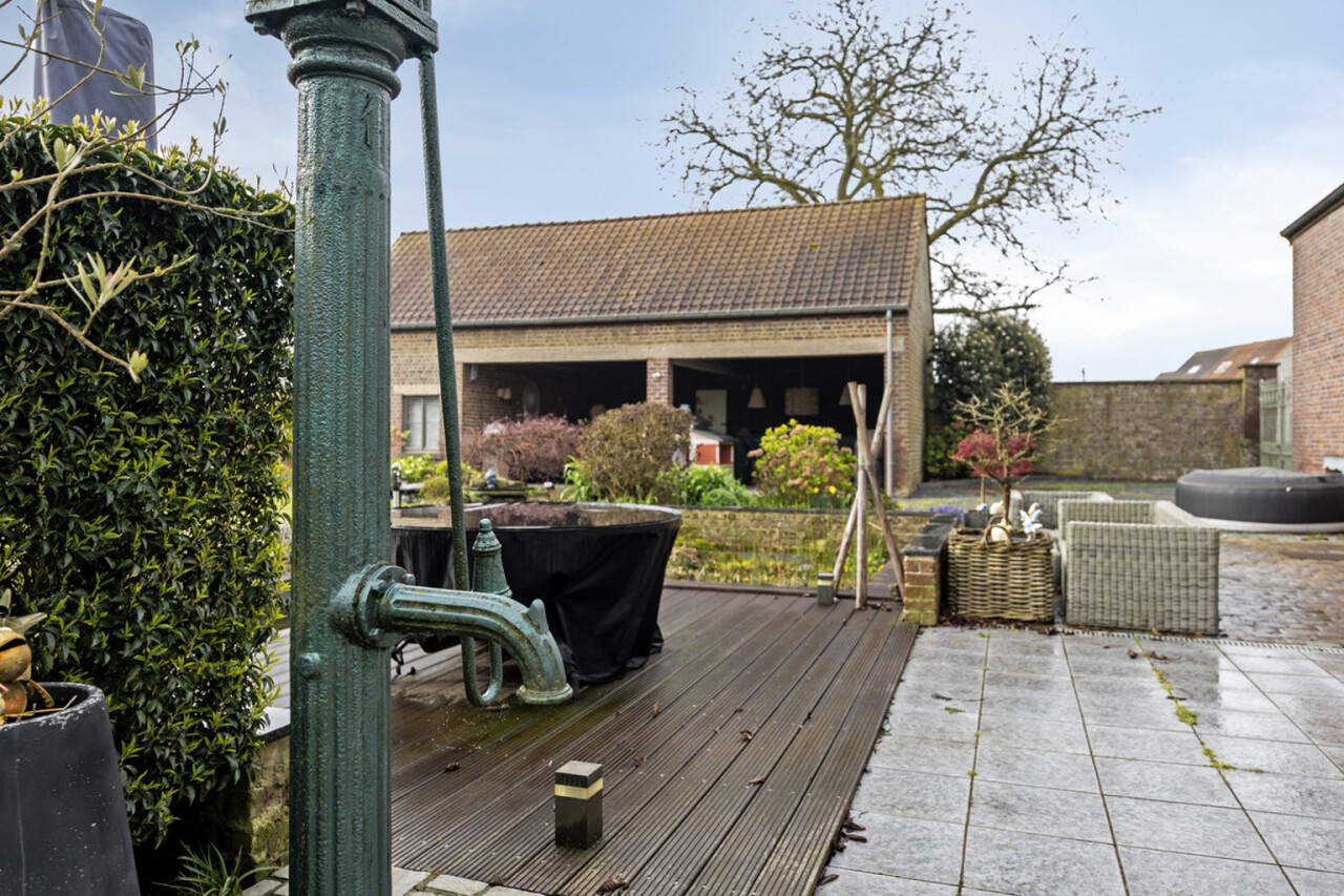 Inkomhal met gastentoilet, ruime en lichtrijke leefruimte met open haard. Eetplaats met volledig ingerichte keuken die aansluit op een charmante tuinkamer. Verder is er een aparte speelkamer of bureau/praktijkruimte. Op de verdieping: 4 slaapkamers (14–20 m²), dressing (15 m²), ruime badkamer en inrichtbare zolder (60 m²) bereikbaar via vaste trap.