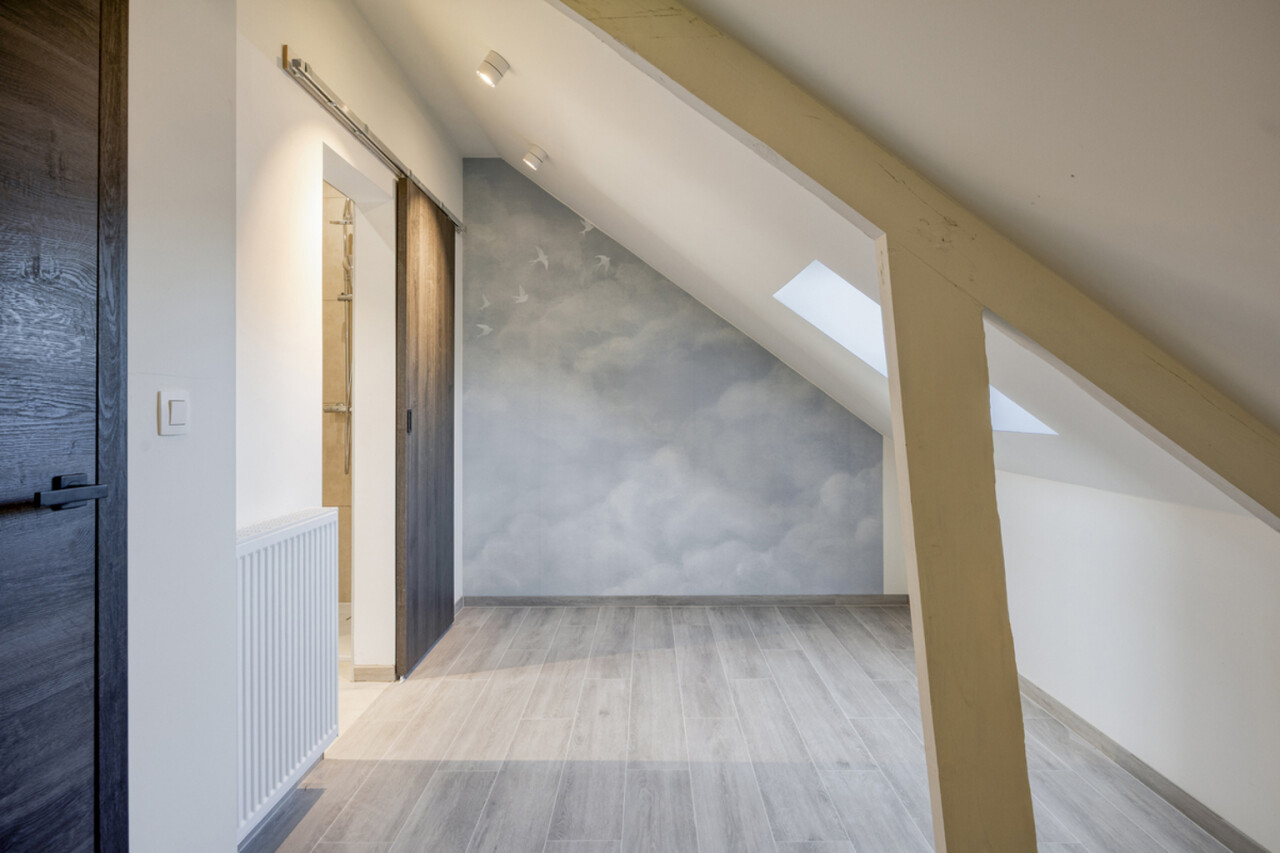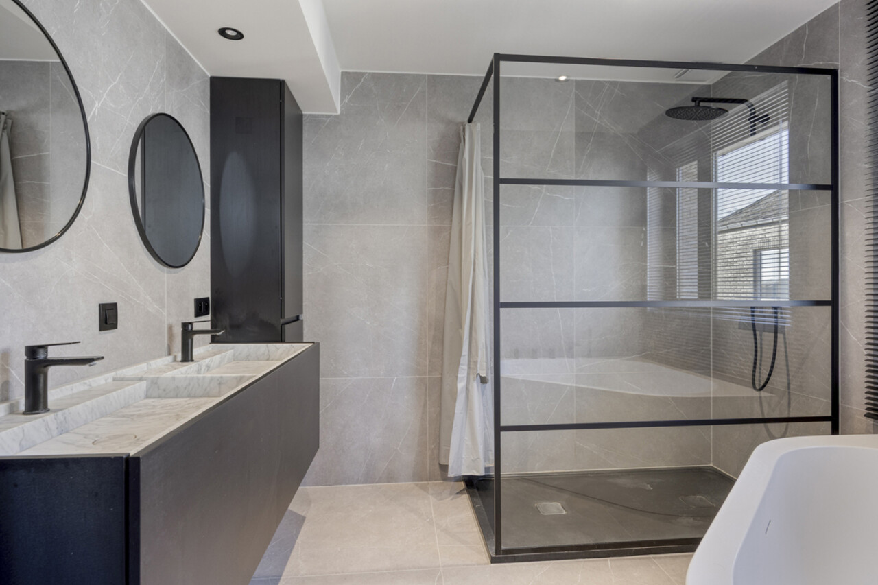 Op het eerste verdiep zijn er 2 kamers waarvan 1 master van maar liefst 30m² en een recent genoveerde badkamer met bad en inloopdouche. Tevens is er nog een aparte wc aanwezig.