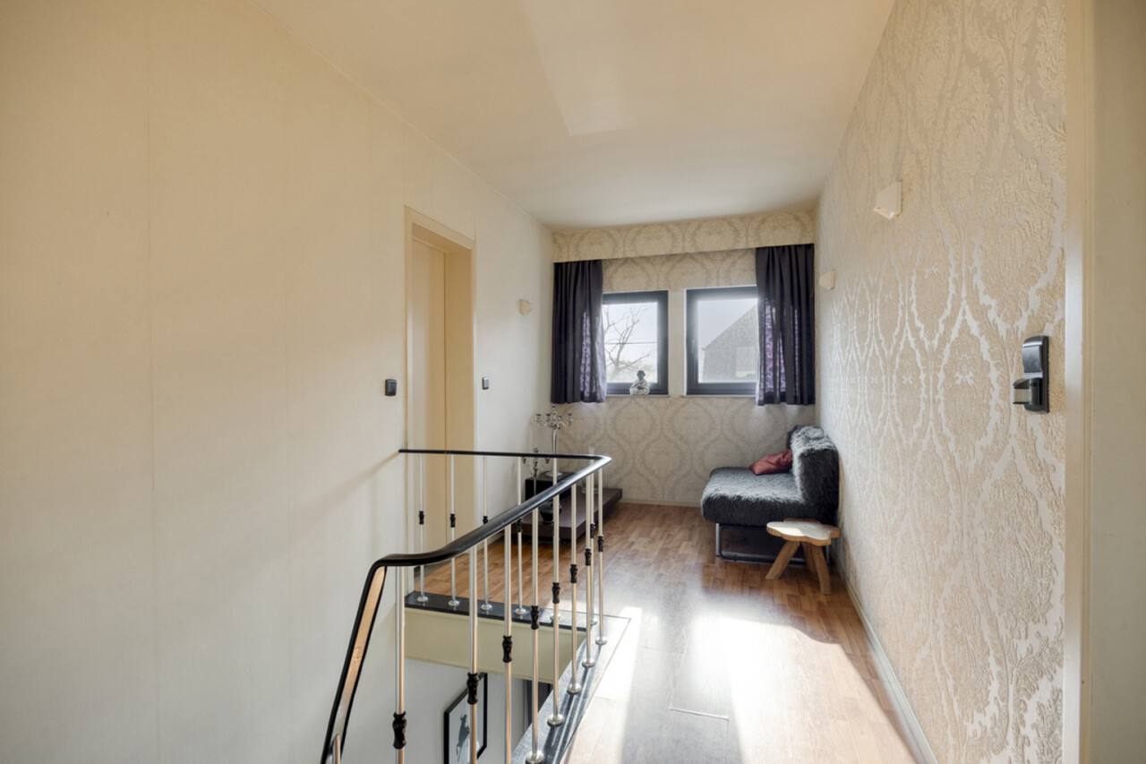 Op de eerste verdieping bevindt zich een ruime overloop die perfect kan worden ingericht als bureelhoek of speelhoek voor kinderen. Verder beschikt de woning over drie zeer ruime slaapkamers van elk circa 20 m² en een badkamer met extra toilet. Vanuit één van de slaapkamers is de zolder bereikbaar.