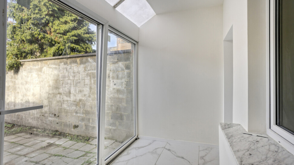 Deze volledig gerenoveerde gesloten bebouwing in Drogenbos beschikt over een lichtrijke inkomhal van 11 m², een woonkamer van 24 m² en een open, volledig uitgeruste keuken van 9 m². Op het gelijkvloers zijn ook een gastentoilet en een veranda van 6 m² aanwezig, met directe toegang tot de zuidgerichte tuin.