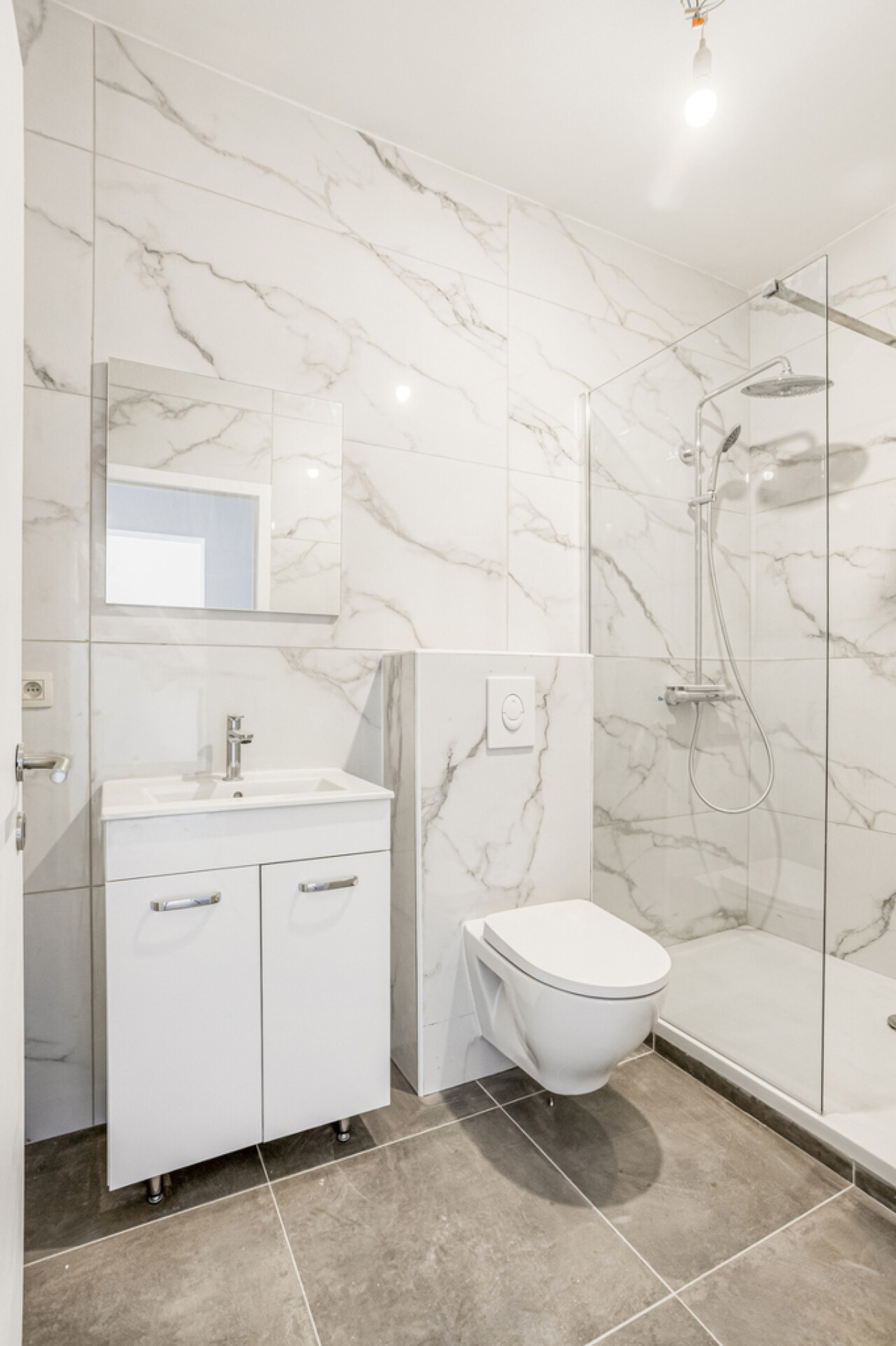 Op de eerste verdieping bevinden zich een badkamer van 6 m² met inloopdouche en toilet, een slaapkamer van 10 m² met een terras van 7 m² en een tweede slaapkamer van 20 m². De tweede verdieping biedt een ruime en lichte slaapkamer van 30 m².
