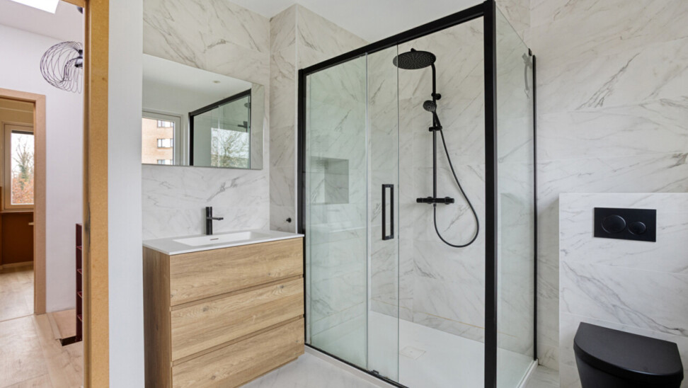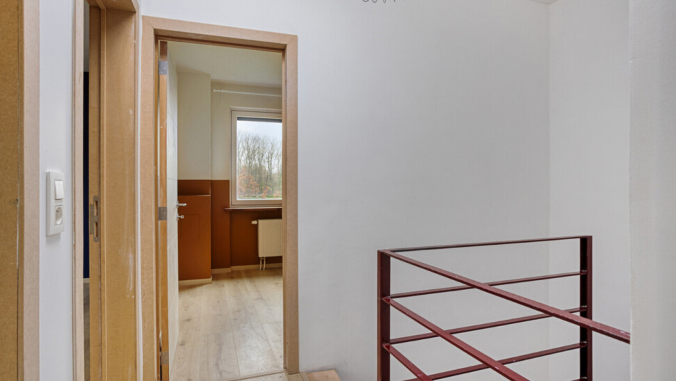 mmo DAVID stelt een volledig gerenoveerde driegevel bel-etage voor, gelegen in een rustige wijk op een toplocatie. Dankzij de drie gevels geniet de woning van veel natuurlijke lichtinval. De inkomhal heeft een apart toilet en biedt toegang tot de garage en de wasberging, van waaruit je ook de fraai aangelegde tuin met terras bereikt. Achteraan geen buren en een weids uitzicht. De tuin is omheind en daardoor veilig voor kinderen en huisdieren. Voor de woning zijn er twee staanplaatsen. Op het eerste verdiep bevindt zich een lichtrijke living met open, volledig ingerichte keuken. Het tweede verdiep telt drie slaapkamers van 8, 11 en 13 m² en een ingerichte badkamer met toilet. De woning werd in 2018 volledig gerenoveerd: nieuwe ramen, loodgieterij, sanitair en elektriciteit,binnenmuur van de voorgevel en dak geïsoleerd, vloeren op het gelijkvloers eveneens geisoleerd. Overal zijn muggenhorren geplaatst.Er is eveneens een videofoon. De betonnen gewelven garanderen een sterke constructie. Er zijn zonnepanelen en een thuisbatterij aanwezig, wat zorgt voor een gunstig EPC (B). De ligging is ideaal: nabij het centrum van Zellik, de Ring, scholen, winkels, Laerbeekbos, fietssnelweg en het centrum van Brussel, met goede bereikbaarheid via openbaar vervoer.