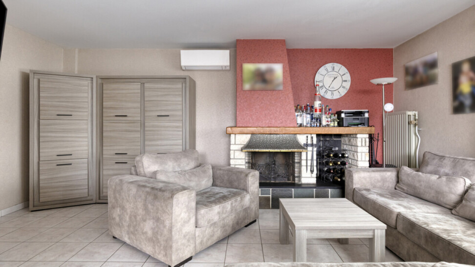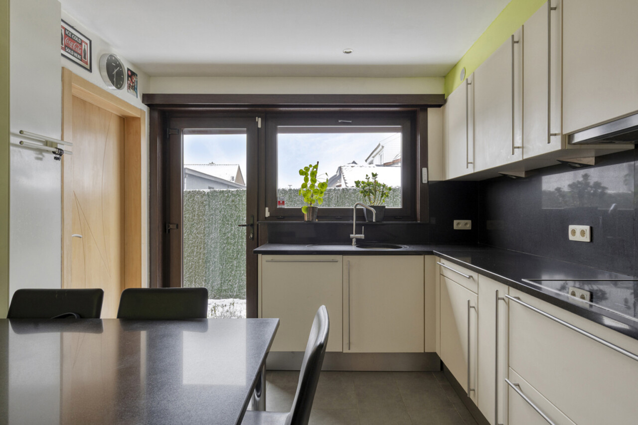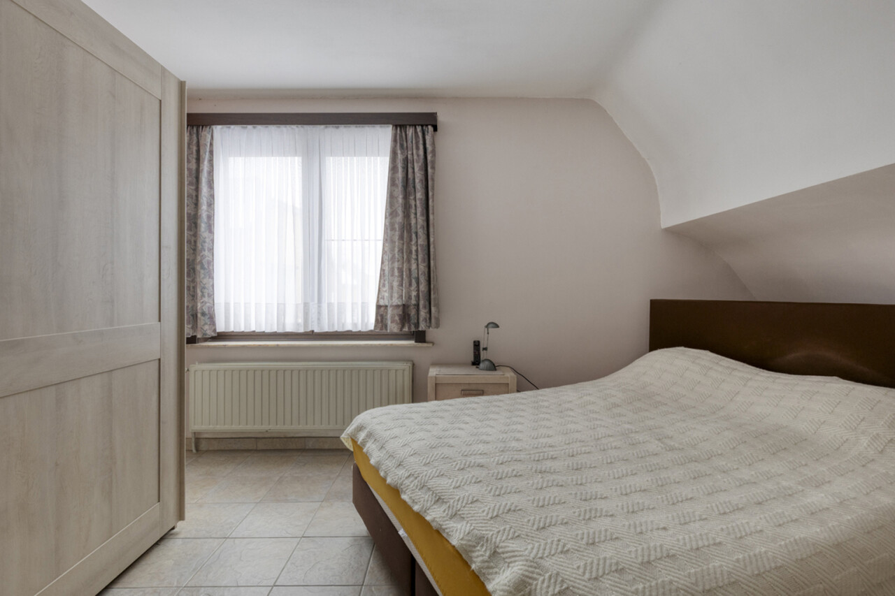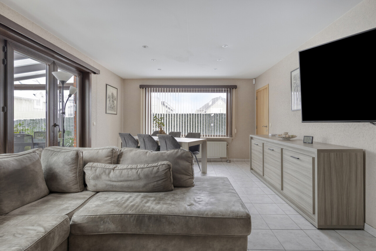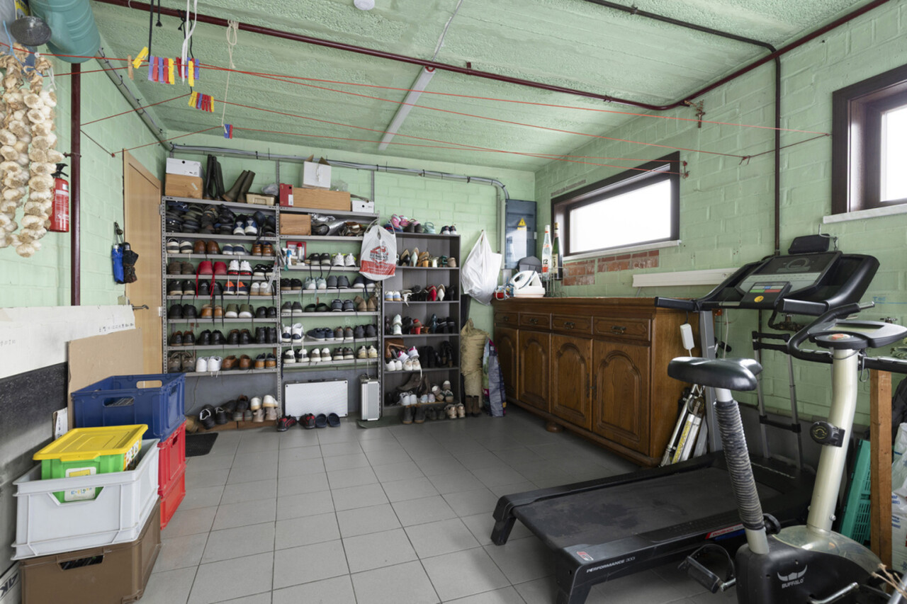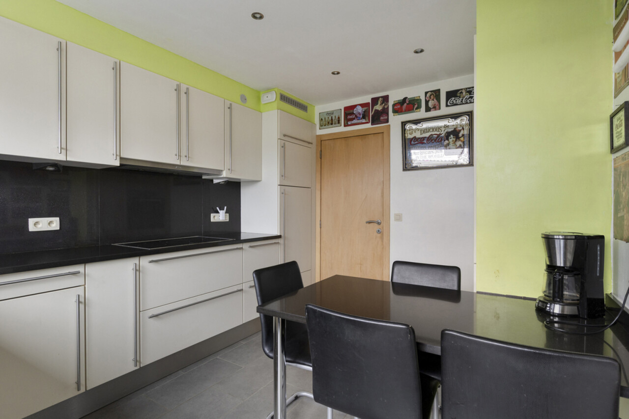 De woning verwelkomt u via een inkomhal met gastentoilet. De ruime en lichtrijke leefruimte van maar liefst 57 m² is voorzien van een open haard en airconditioning en sluit naadloos aan op de volledig ingerichte keuken. Verder beschikt de woning over een garage en twee praktische bergingen.