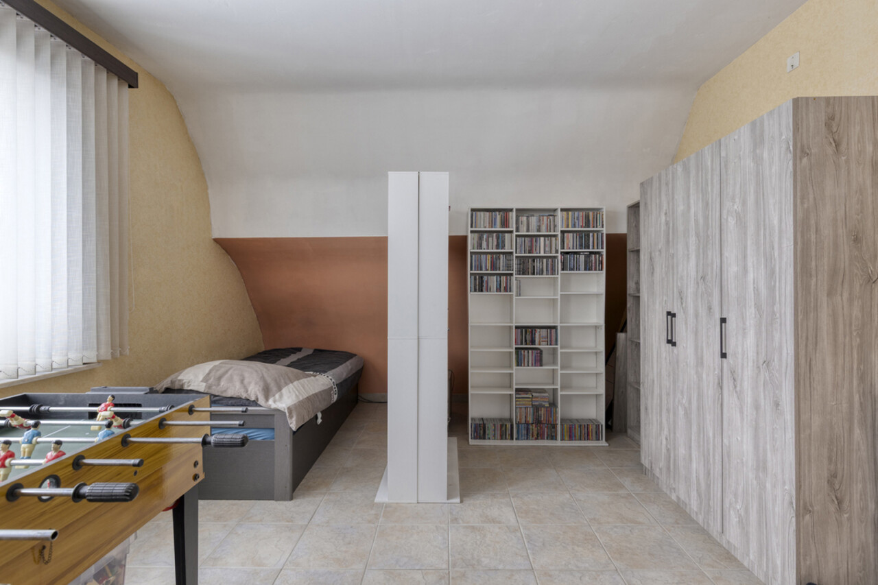 Op de eerste verdieping bevinden zich vier volwaardige slaapkamers, waarvan twee met airconditioning. De master bedroom beschikt over een aansluitende dressing (deels nog naar eigen smaak in te richten). Daarnaast zijn er een badkamer en een apart toilet.